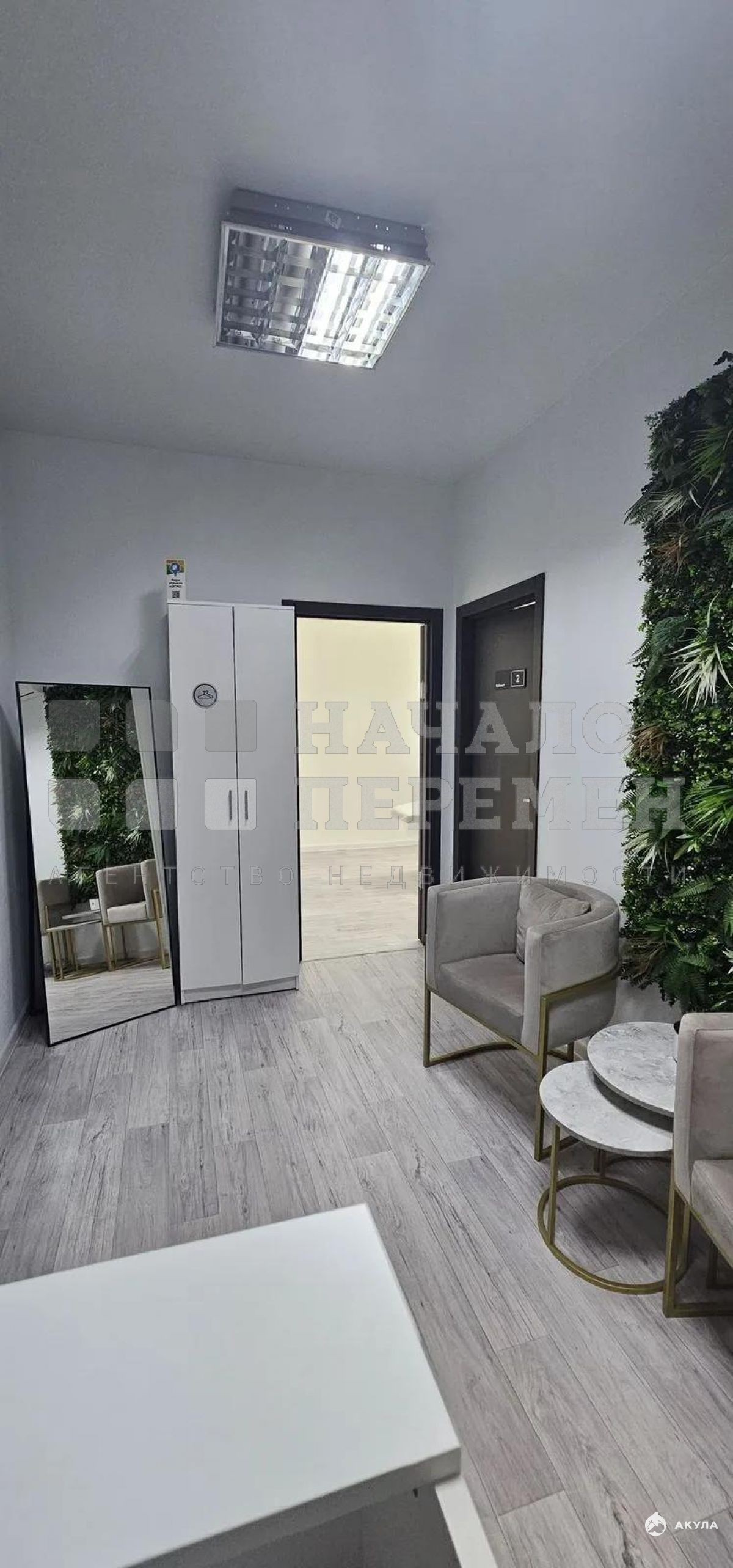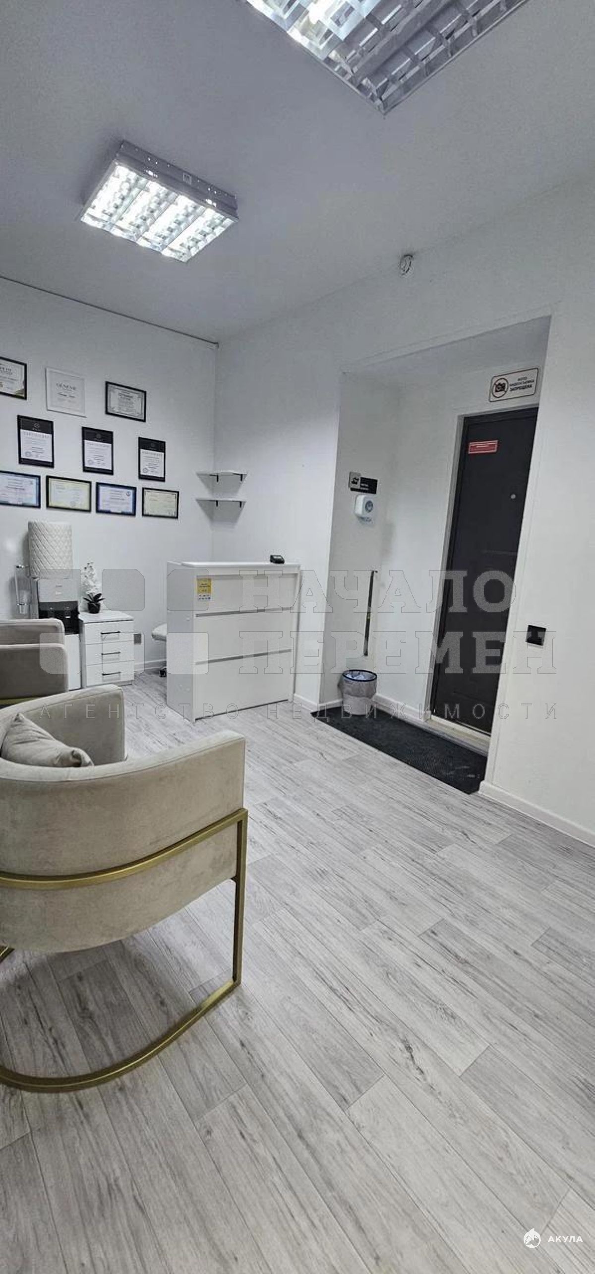 *В помещении выполнен качественный ремонт: пол - коммерческий ламинат, стены - покраска и офисные обои, натяжной потолок с офисными LED светильниками.