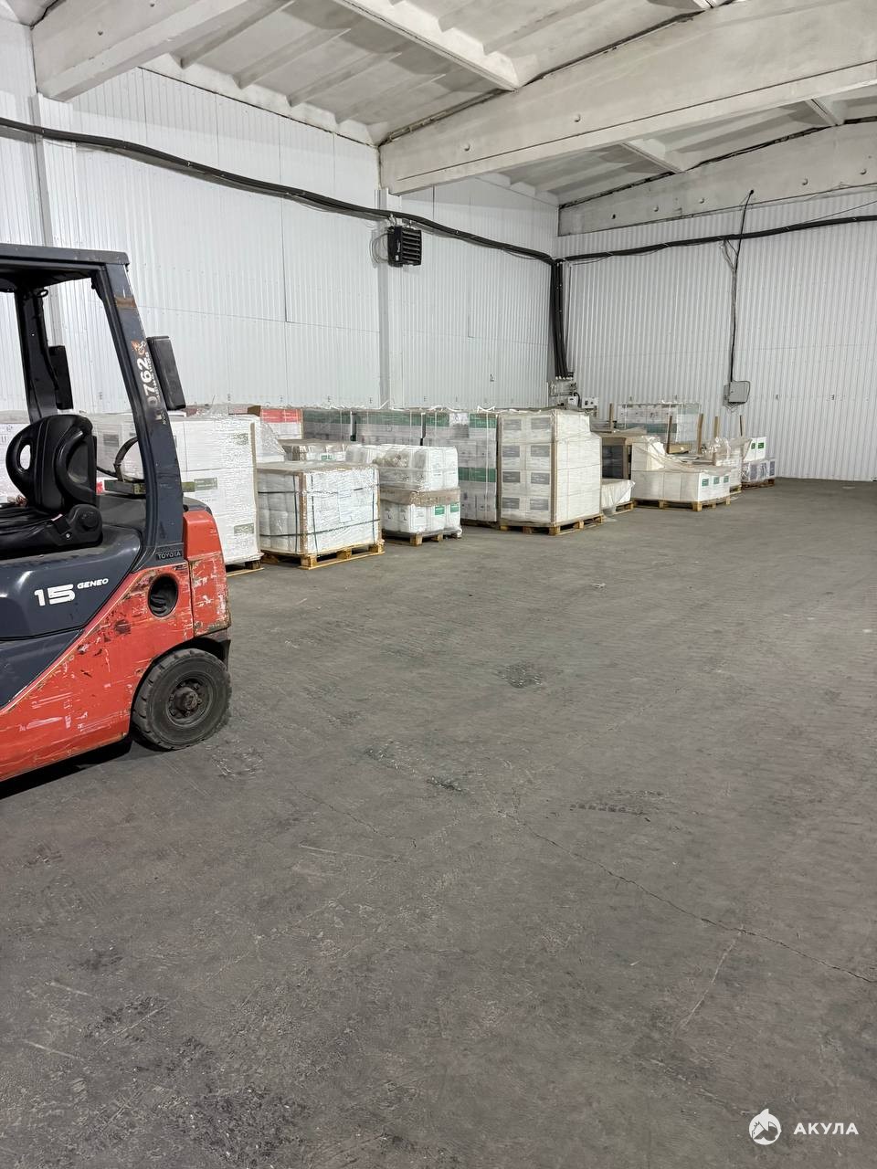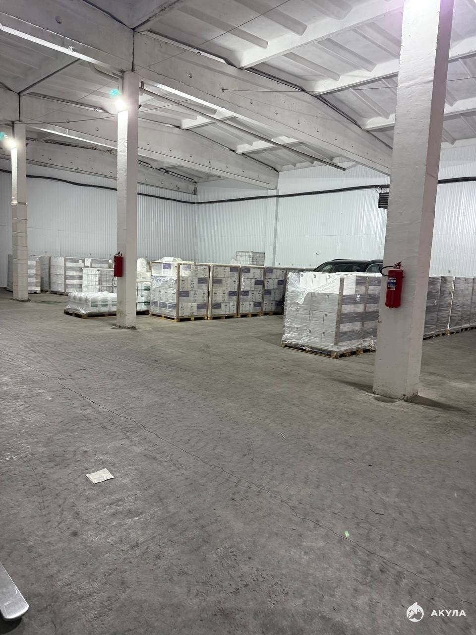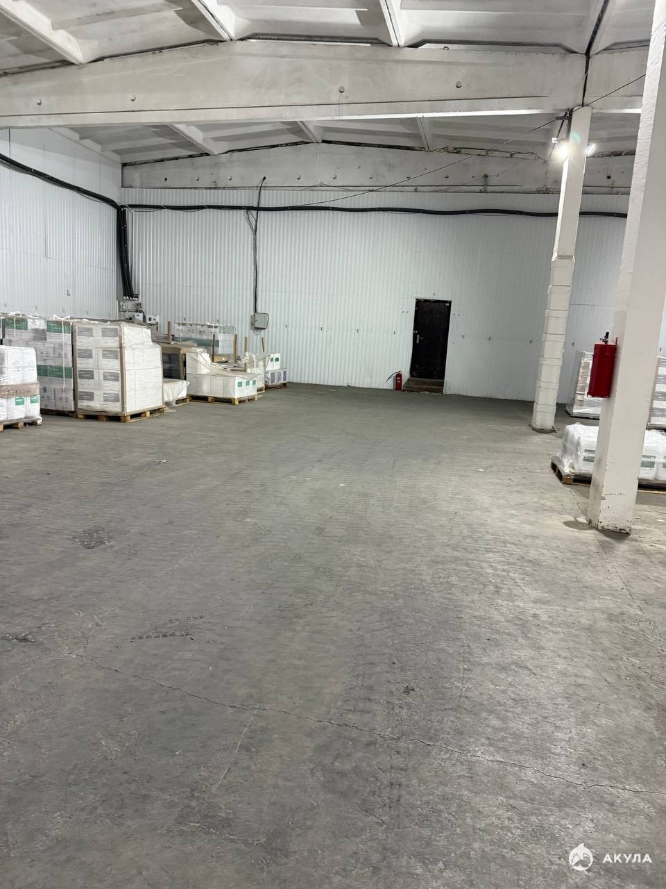 Пол: ровный бетонный — готов к установке стеллажей и штабелированию