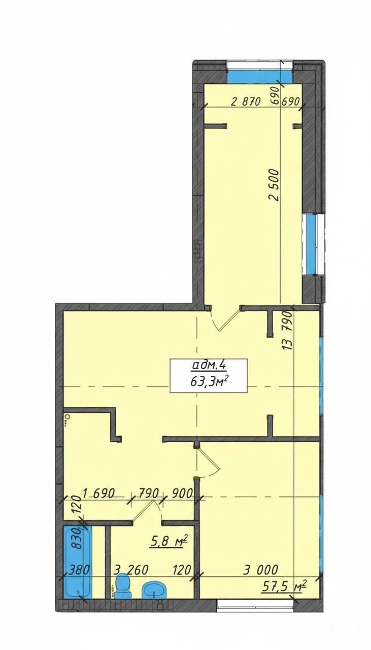 Общая площадь – 39, 2 м2.