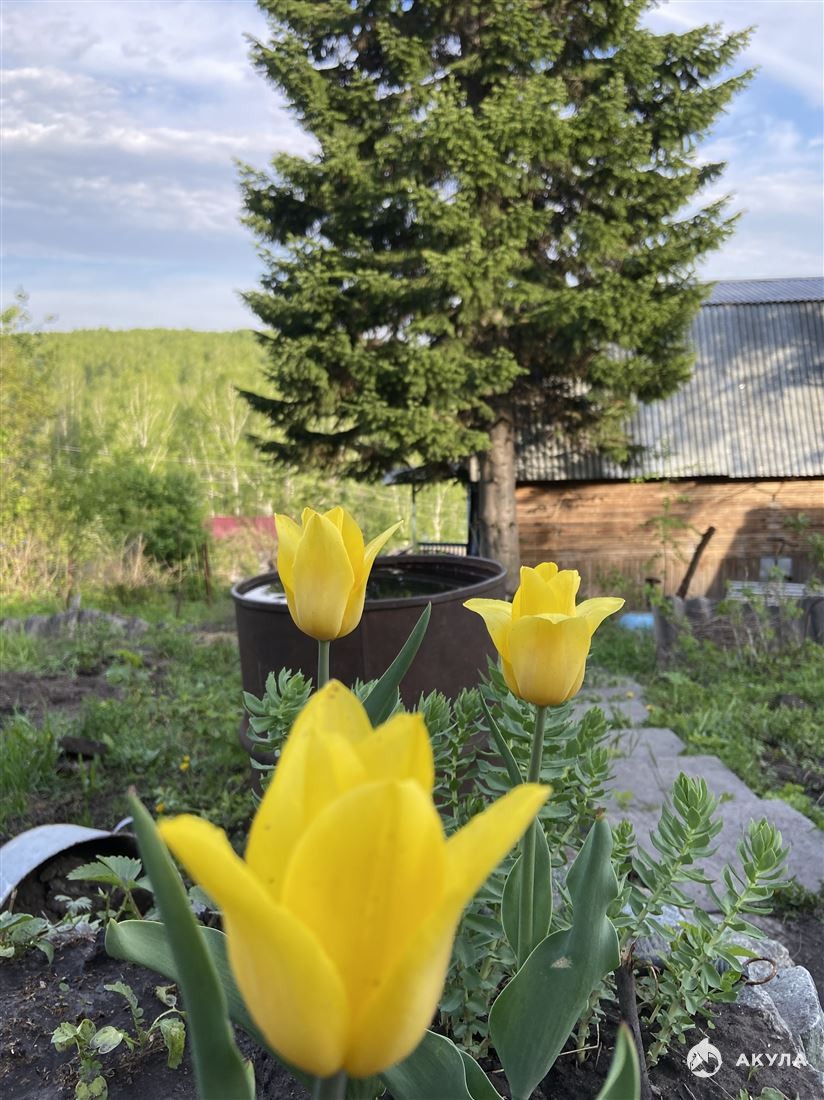 Дом 2-х этажный с баней, из бруса, есть водопровод с поливной водой и электричество. Хорошие соседи.