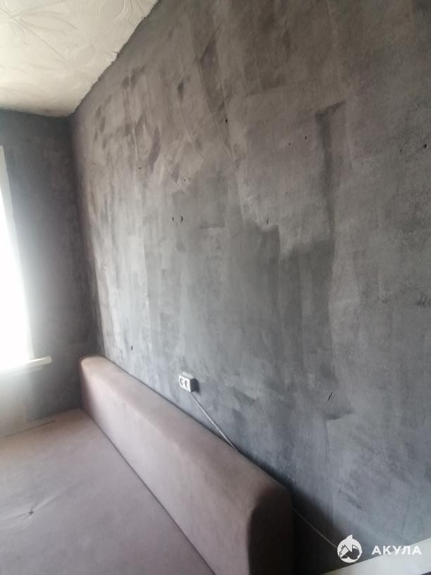 Состояние комнаты простое, установлено пластиковое окно, на стенах декоративная штукатурка в стиле "лофт".