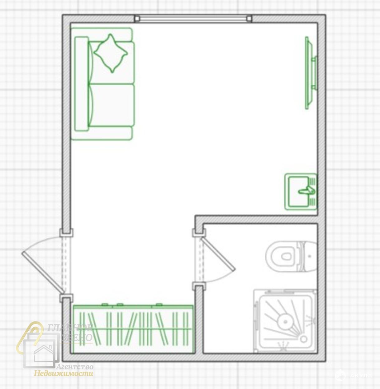 Студия с туалетом , душевой кабиной!
