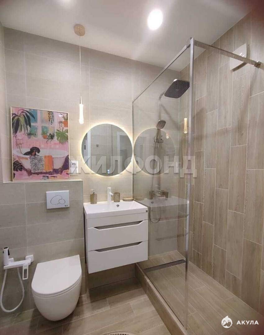 душевая кабина, подвесной унитаз, стиральная машина - аккуратно, стильно, удобно.