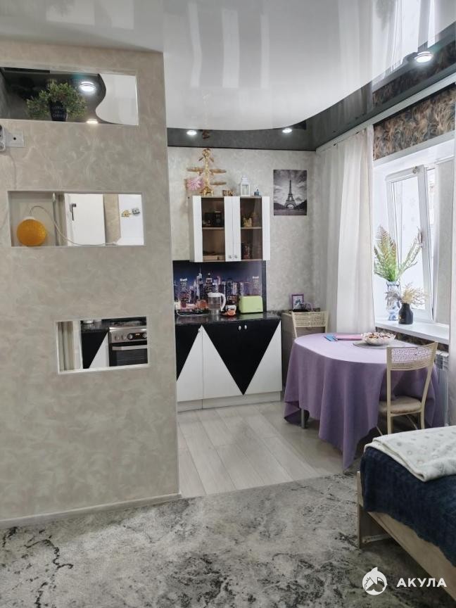 Очень удобная планировка квартиры- большая кухня- гостиная и спальня, хороший коридор и большой с/узел с бойлером, высота потолков 3 метра. В квартире выполнен хороший ремонт, везде натяжные потолки, на полу- ламинат, в с/узле кафельная плитка.