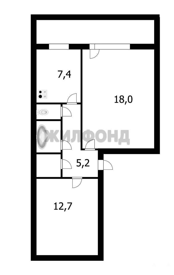 2 комн. квартира по ул. Рабочая. Общей площадью: 48.80 кв.м.