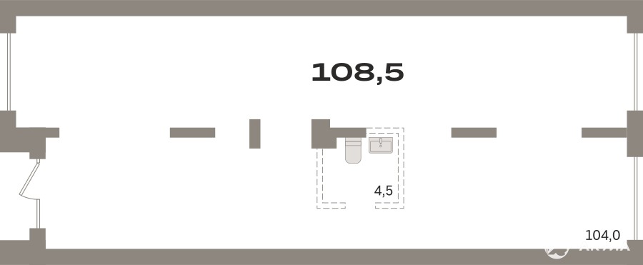Помещение свободного назначения на 1 этаже, общая площадь 108.5 кв.м., без отделки. Стоимость помещения 23, 850, 000 руб., цена за кв.м 219, 815 руб.