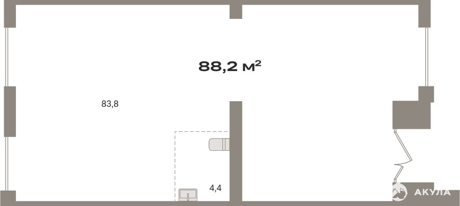 Помещение свободного назначения на 1 этаже, общая площадь 88.2 кв.м., без отделки. Стоимость помещения 19, 850, 000 руб., цена за кв.м 225, 056 руб.
