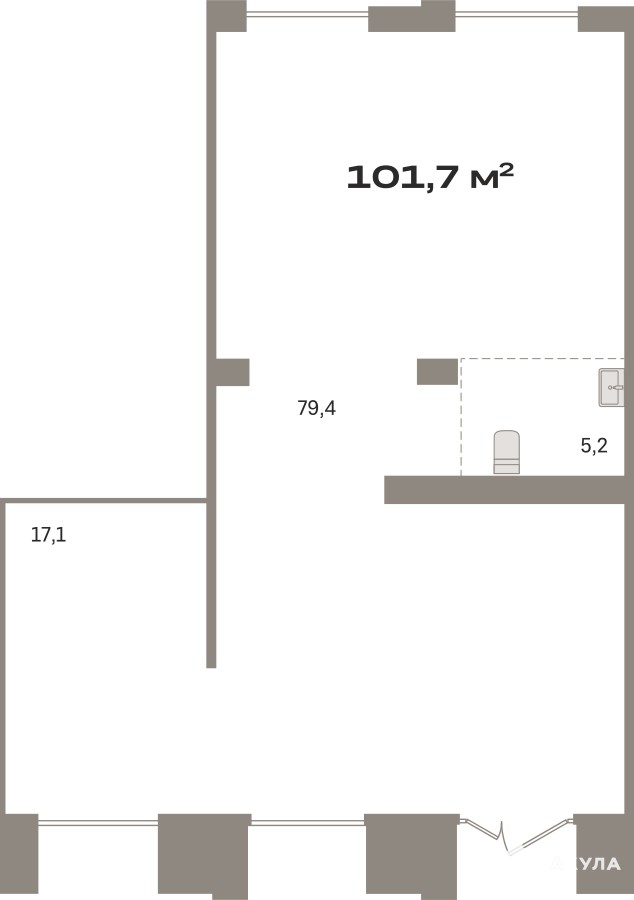 Помещение свободного назначения на 1 этаже, общая площадь 101.7 кв.м., без отделки. Стоимость помещения 22, 400, 000 руб., цена за кв.м 220, 255 руб.