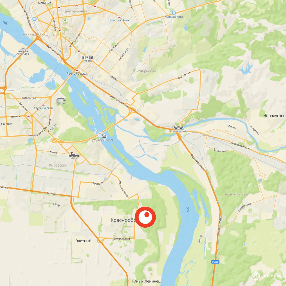 «Пшеница» расположена в третьем микрорайоне посёлка Краснообск, на пересечении улицы Центральная и Советского шоссе.