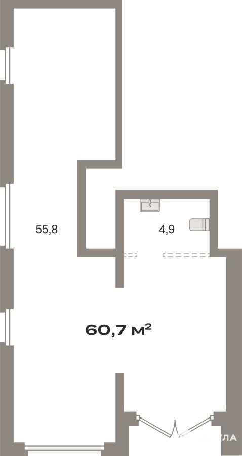 Помещение свободного назначения на 1 этаже, общая площадь 60.7 кв.м., без отделки. Стоимость помещения 14, 000, 000 руб., цена за кв.м 230, 642 руб.