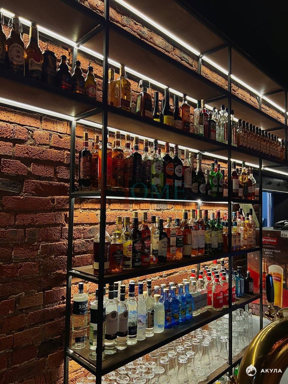 В баре выполнен стильный ремонт с уникальными дизайнерскими элементами.