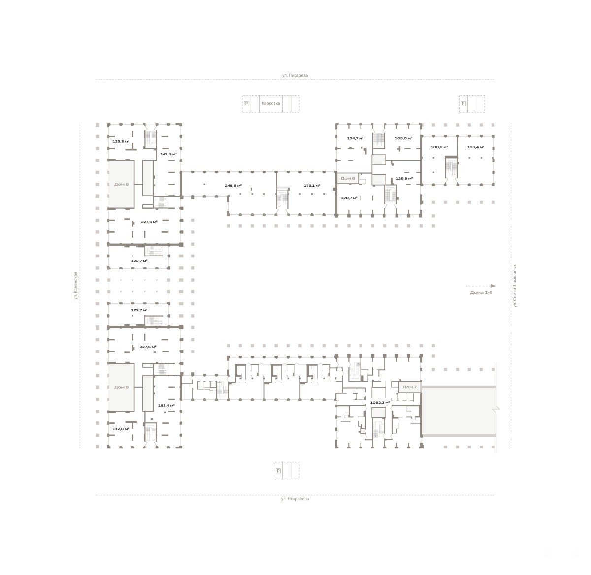 Квартал «Мылзавод» состоит из двух 9-этажных урбан-вилл, четырех 17-этажных и трех 30-этажных башен, объединенных стилобатом. проект расположен в центре города в границах улиц Некрасова, Каменская, Писарева и Семьи Шамшиных.