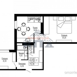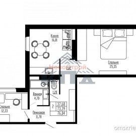 2-комнатная с большой кухней и жилой комнатой 25 кв. м. 76/38/16 2-комнатная квартира 76, 04* кв. м. (75, 78 кв.м.)с большой кухней (16 кв.м.) нестандартной планировки и просторной жилой комнатой более 25 кв.м.. Кухня-гостиная, в которой устанавливается электроплита от застройщика, а вы сами...