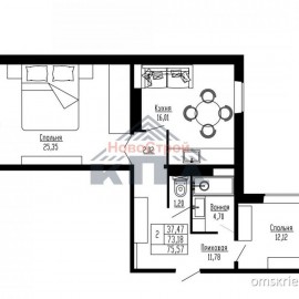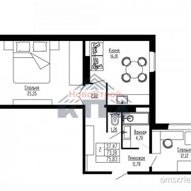 2-комнатная с большой кухней и жилой комнатой 25 кв. м. 76/37/16 2-комнатная квартира 75, 83* кв. м. (75, 57 кв.м.)с большой кухней (16 кв.м.) нестандартной планировки и просторной жилой комнатой более 25 кв.м.. Кухня-гостиная, в которой устанавливается электроплита от застройщика, а вы сами...