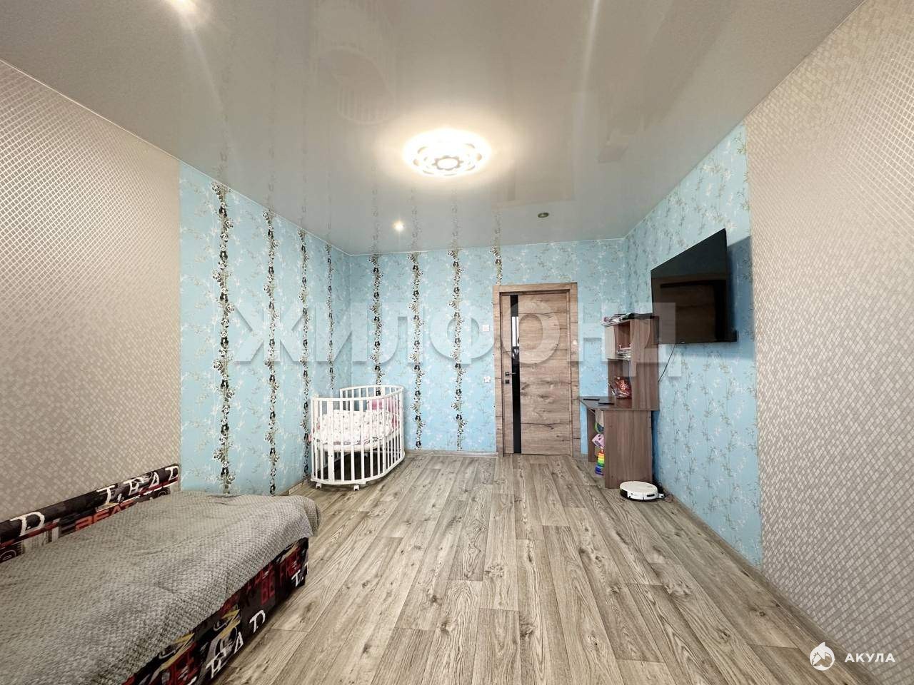 Окна пластиковые, балкон застеклен. На полу линолеум. Натяжные потолки, кроме санузла и ванной.