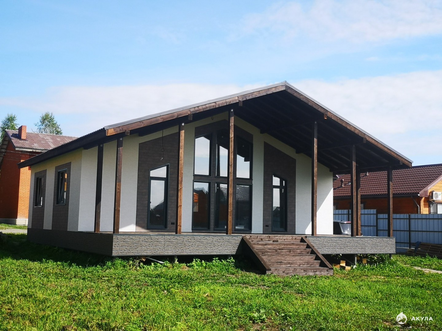-Кровля производство "Металл профиль" покрытие Супермонтерей матовое цвет графит гидроветрозащита Fakro. -Окна и двери, стеклопакеты энергоэффективные с теплоотражающим покрытием, 3-х камерный профиль Veka Euroline, кашированные снаружи матовый графит, две двери для выхода на террасу. -Дверь входная с терморазрывом. Дом расположен на 5 улице, асфальтированная дорога до участка. в шаговой доступности: остановка, магазин, детский сад, тренажерный зал, детская площадка, вокруг поселка березовый лес, озеро с пляжем, Поселок обжитый, территория огорожена, соседи все молодые семейные. Подходит под любые виды расчета!! Один взрослый собственник. Ждем на просмотр Дом оформлен в собственность, подключен ко всем коммуникациям (прямые договора ГазпромМежрегионГаз), адреса на дом и участок получены.