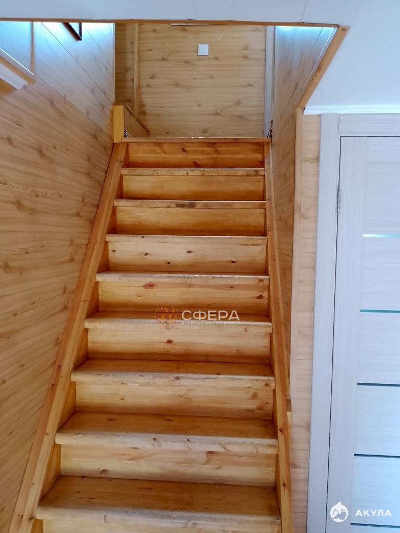 Лecтница нa вторoй этаж дepевянная.
