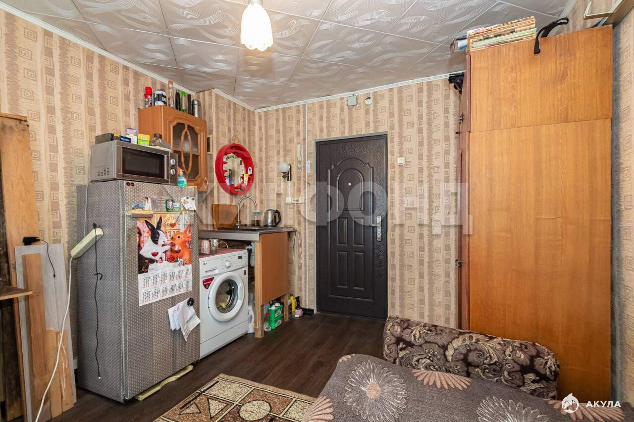 Вся мебель и холодильник остается. В комнату проведена вода, установлена стиральная машина.