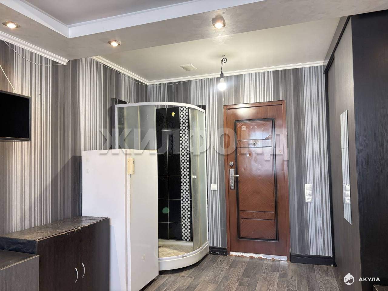 Продается комната в общежитии коридорного типа площадью 13, 3 кв. метра. Стены оклеены обоями, на полу ламинат. На потолке установлено достаточное количество световых точек. В комнате находится своя душевая кабина с отделкой кафелем по стене. Сверху установлена вытяжка. Достаточное количество розеток. Окно пластиковое. В наличии холодильник и высокий шкаф.