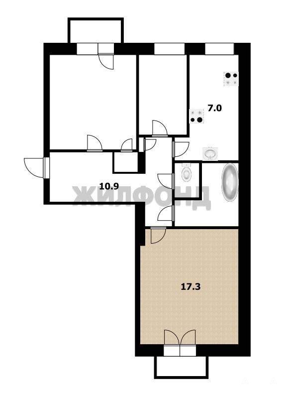 - 17.3 м²