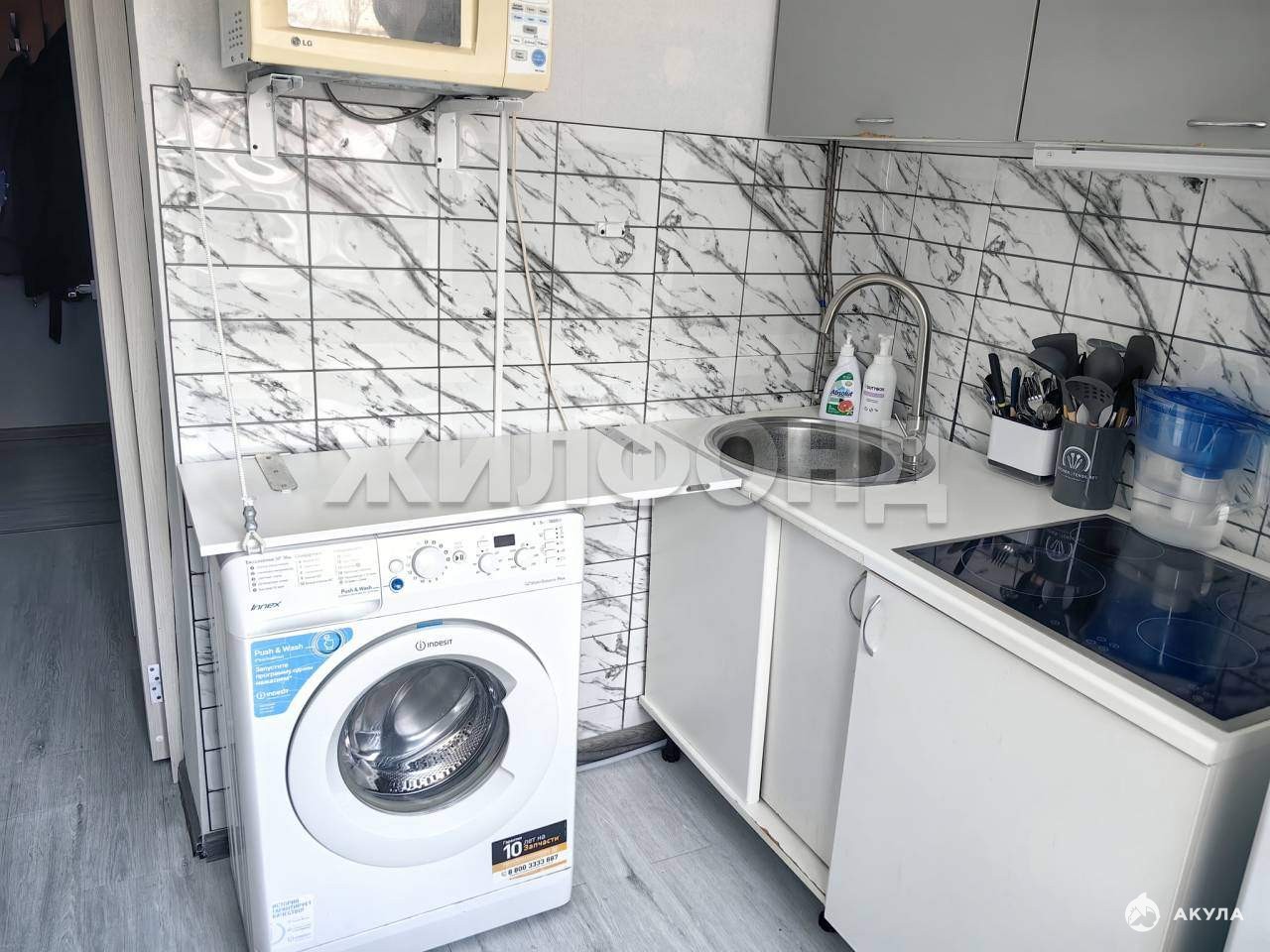 Остаётся кухонный гарнитур с варочной поверхностью, диван, остальная мебель по согласованию.