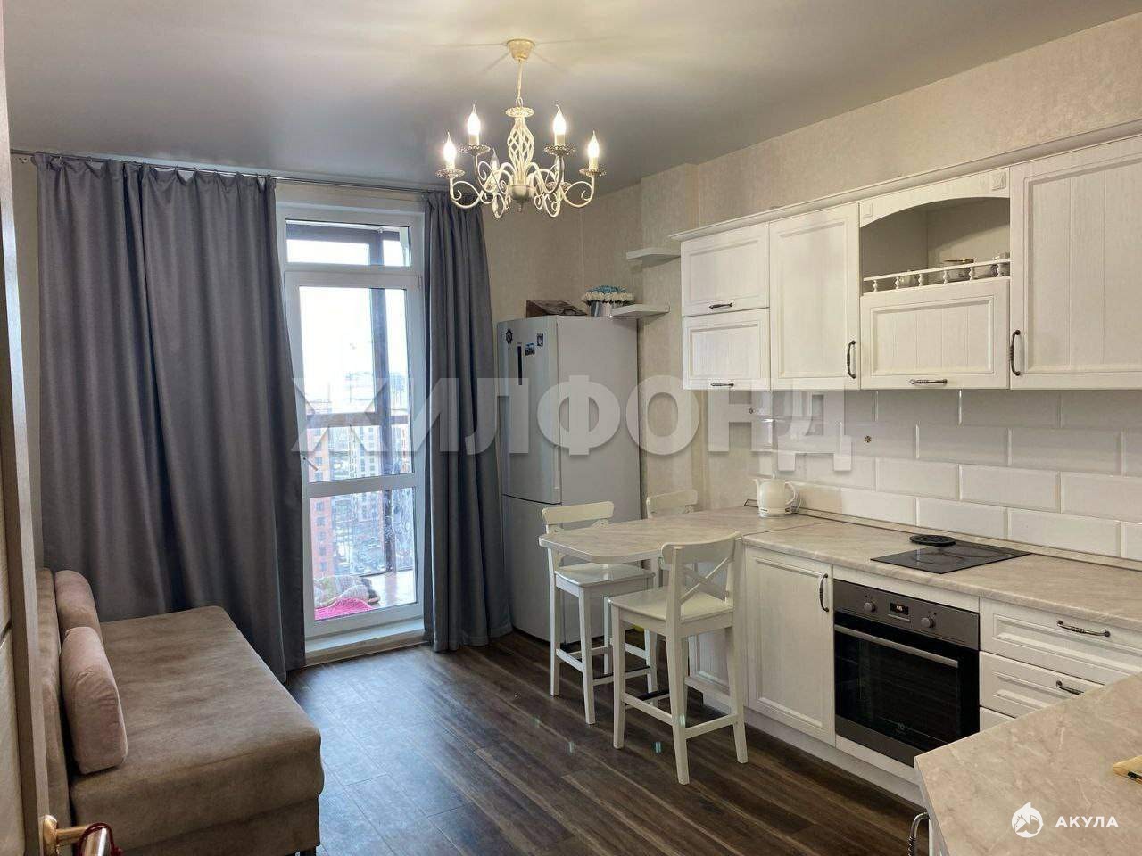 В квартире установлена и останется новым жильцам красивая кухня в светлых тонах, выполнена из качественных материалов. В прихожей встроенная , удобная и просторная гардеробная комната.