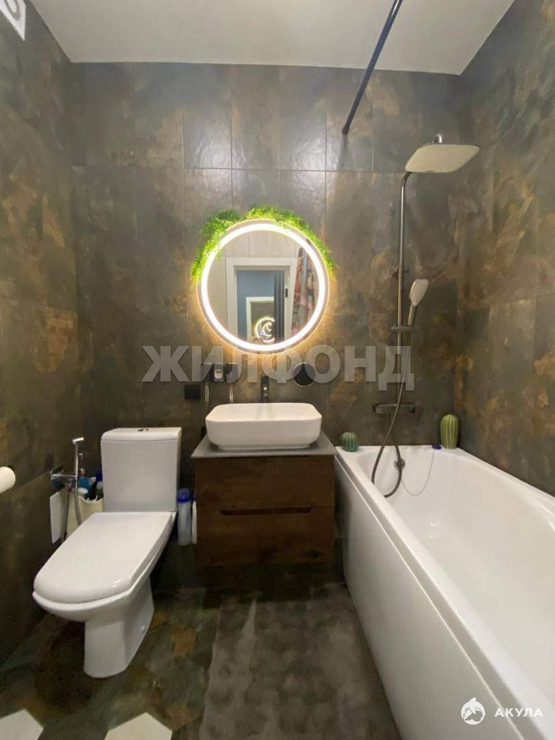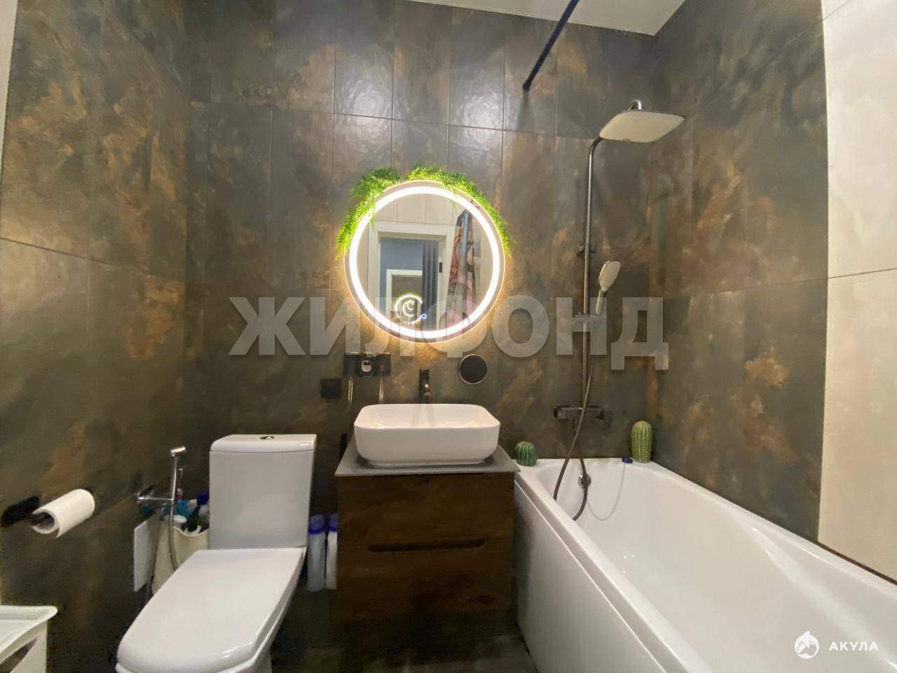 Санузел выполнен в современном стиле, все тщательно продумано и подобрано.
