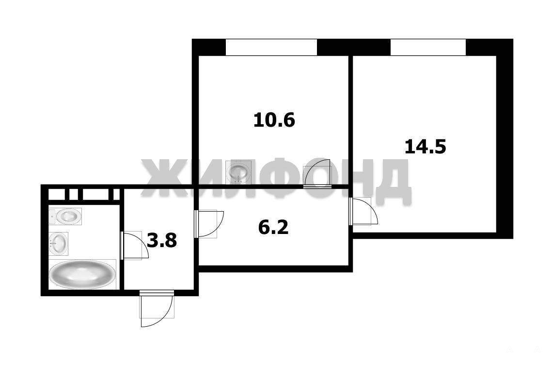 Просторная планировка: Большая кухня 10, 6 кв. , которую можно обустроить как стильную гостиную-столовую, и отдельная солнечная комната 14, 5 кв.