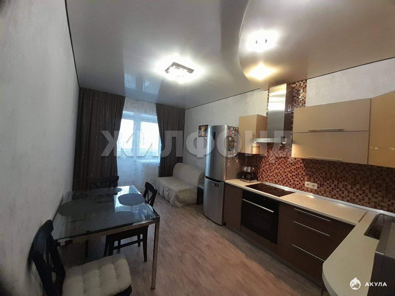 ПОКУПАТЕЛЮ остается кухонный гарнитур с бытовой техникой, встроенная система в гардеробной, диваны.