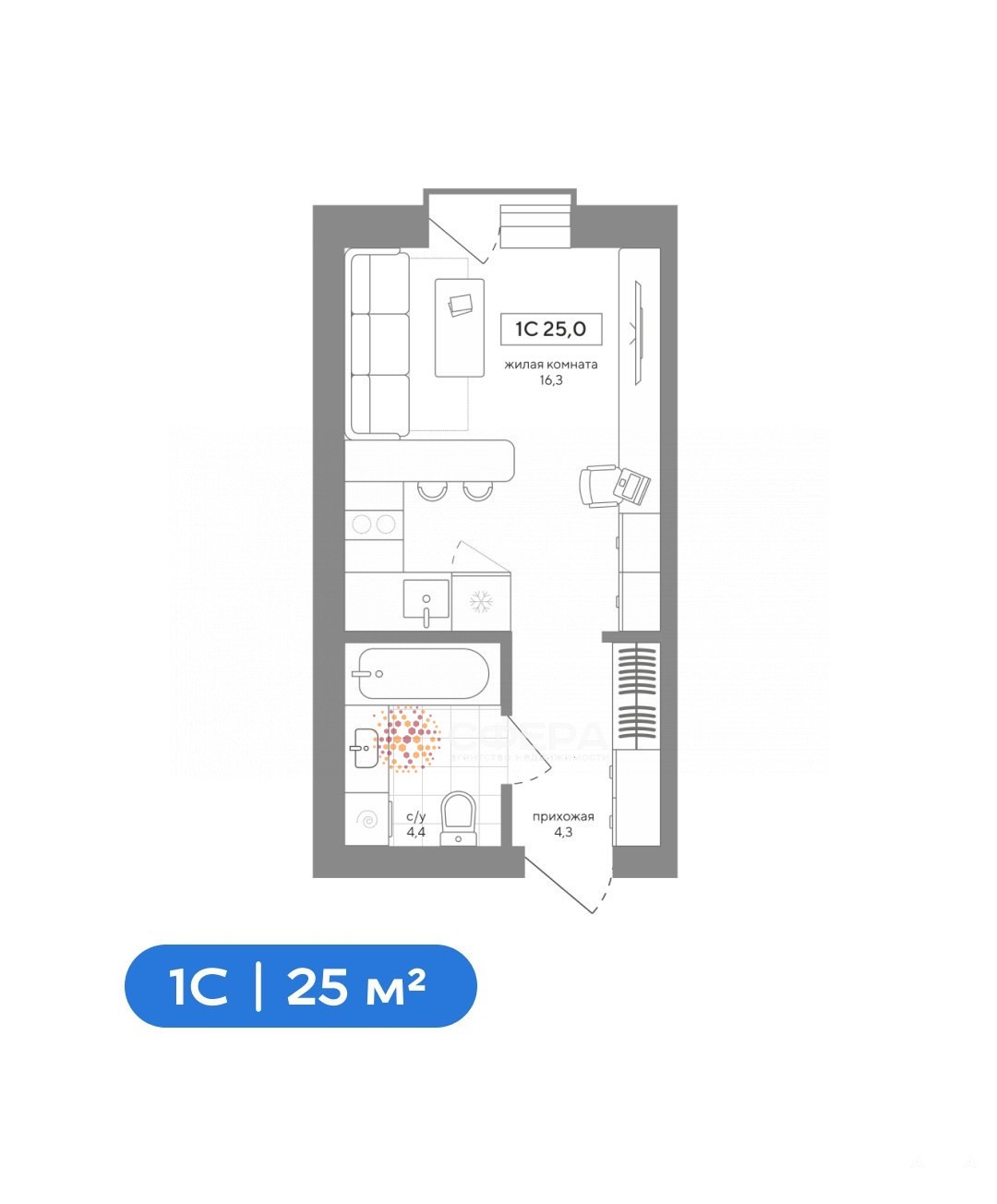 - 16.3 м²