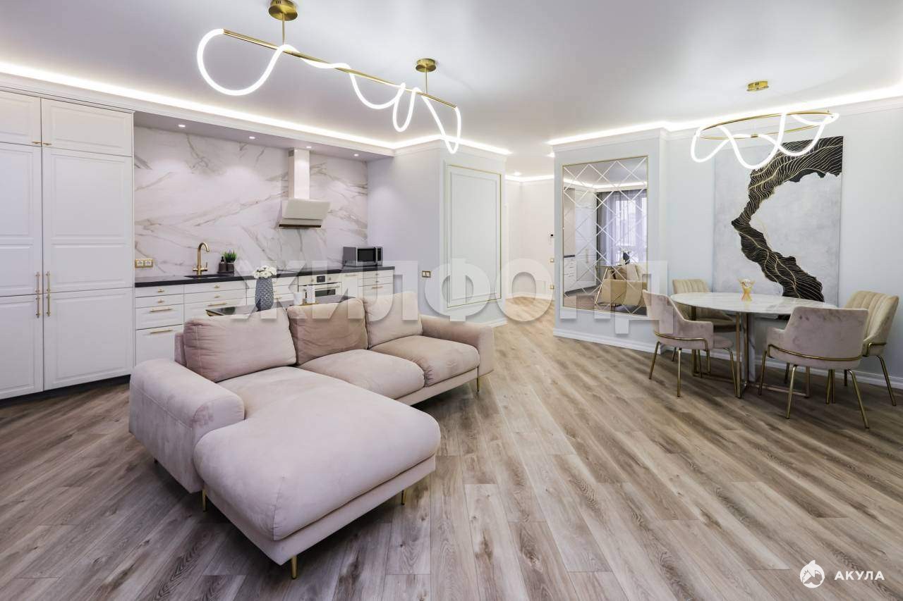 Готовый дизайн-проект. В отделке использованы только премиальные материалы, выдержана безупречная цветовая гамма. Ремонт выполнен без компромиссов в качестве.