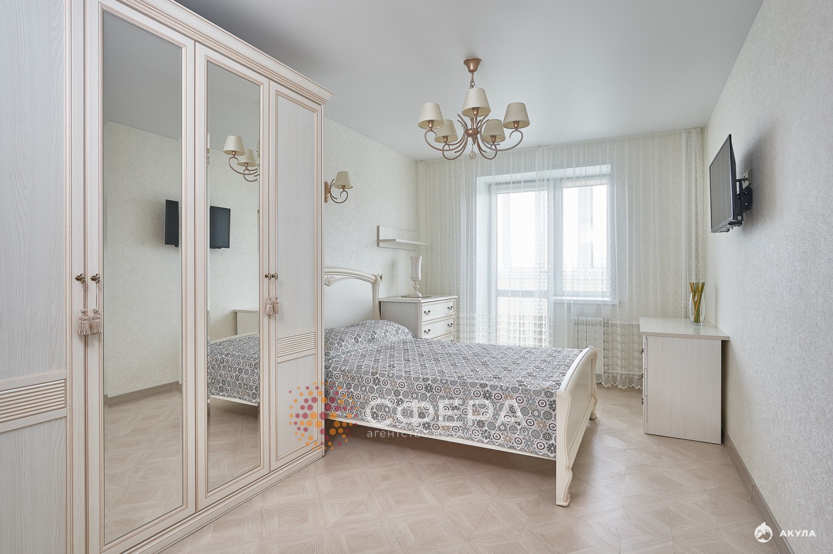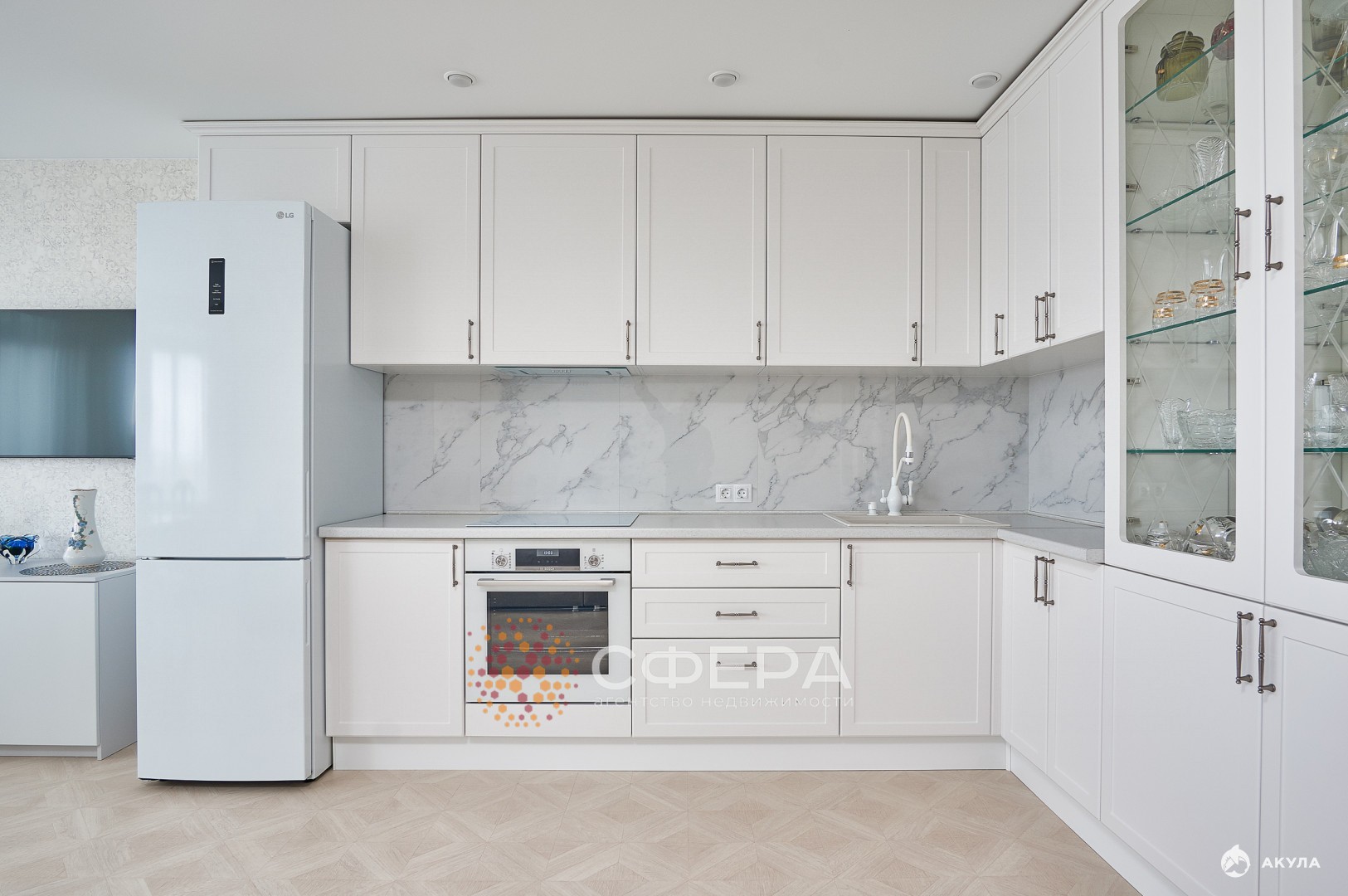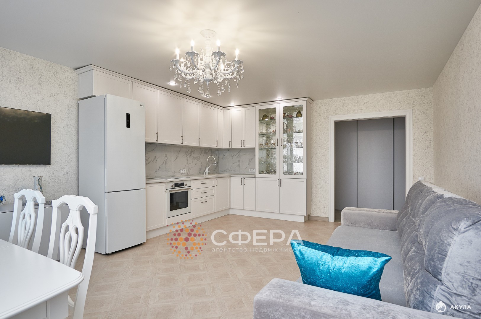 • Светлые стены, мебель и полы создают атмосферу уюта.