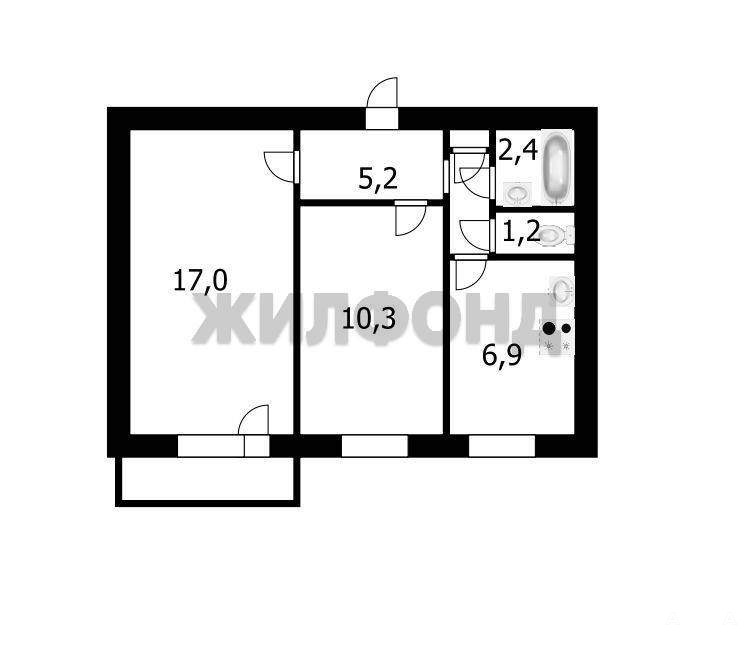2 комн. квартира по ул. Бориса Богаткова. Общей площадью: 42.90 кв.м.