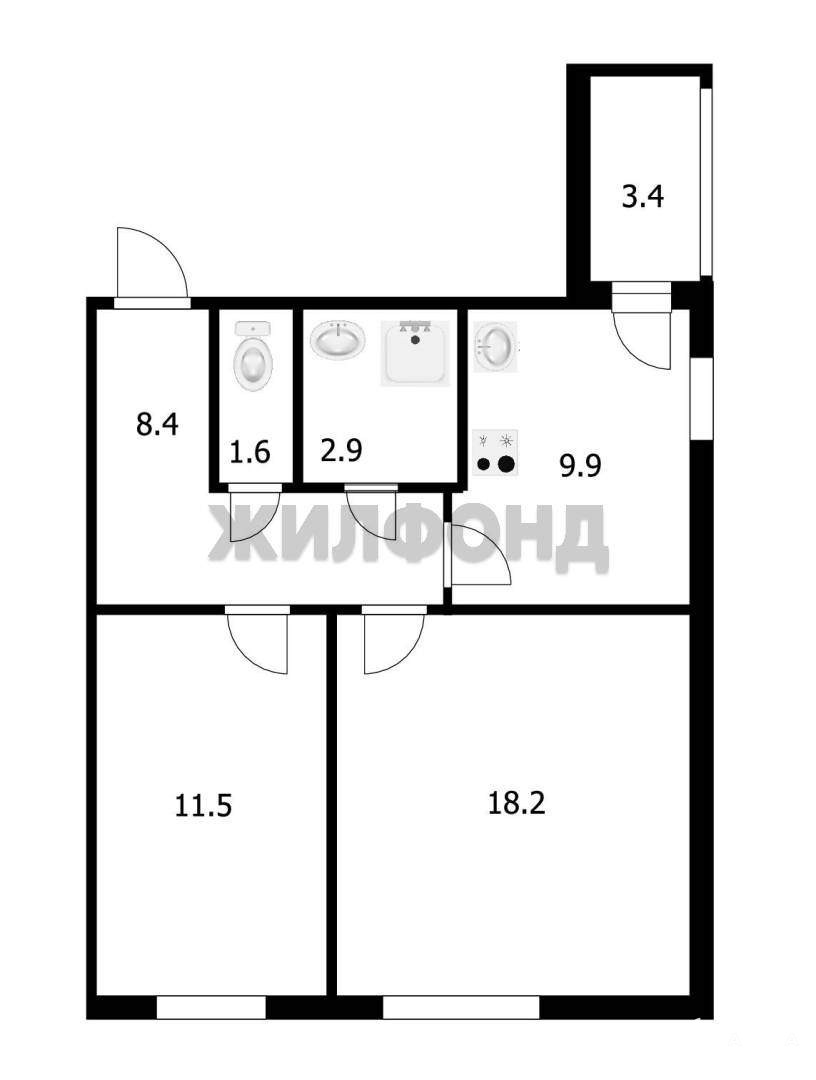 2 комн. квартира по ул. Краснообск пос. Общей площадью: 56.40 кв.м.