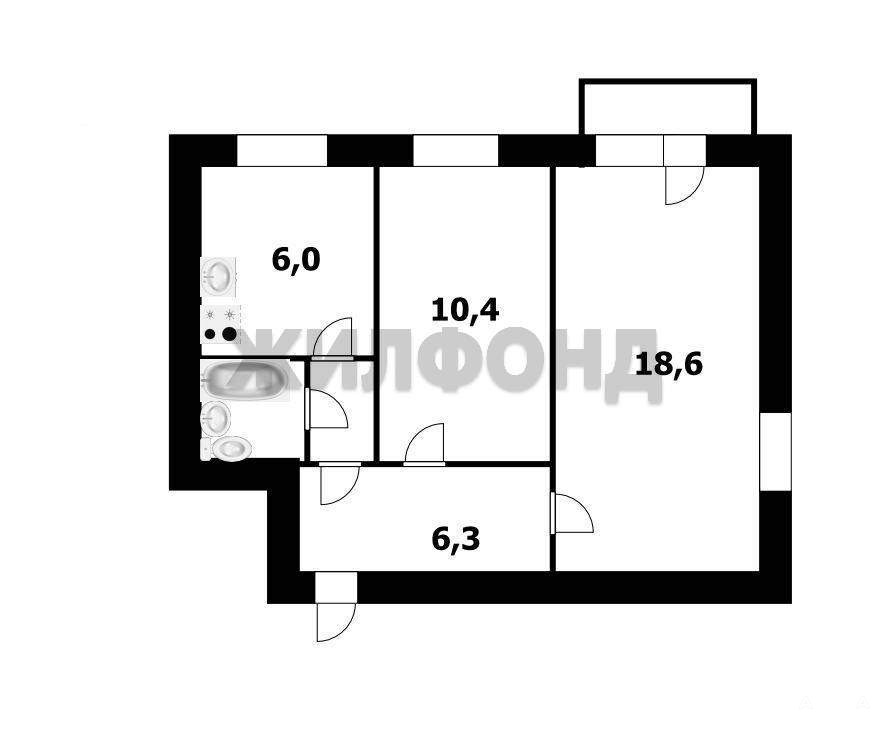 2 комн. квартира по ул. Дмитрия Донского. Общей площадью: 42.30 кв.м.