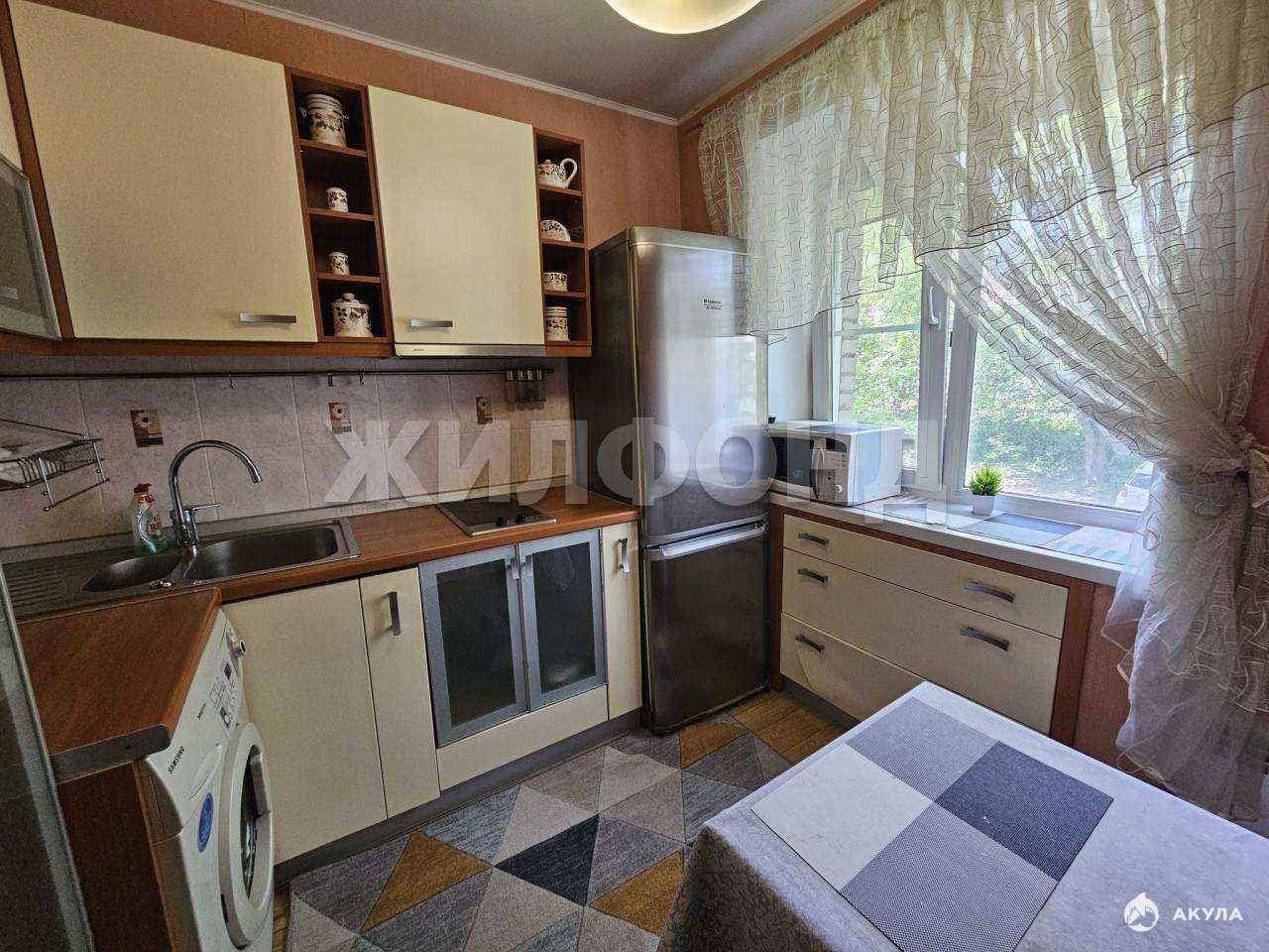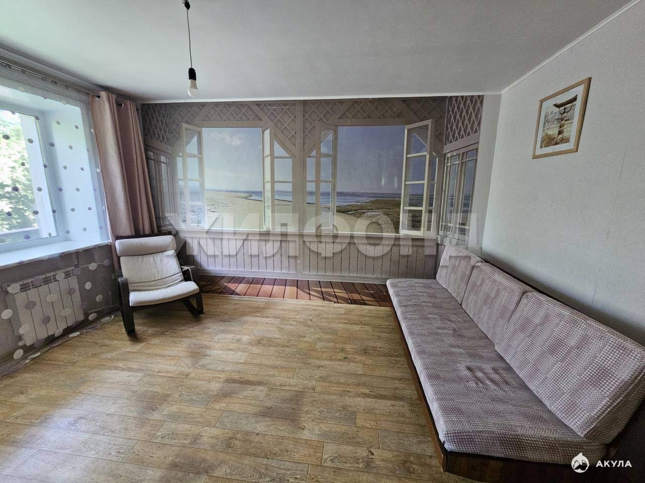 Окна выходят на 2 стороны. В квартире остаётся кухонный гарнитур.