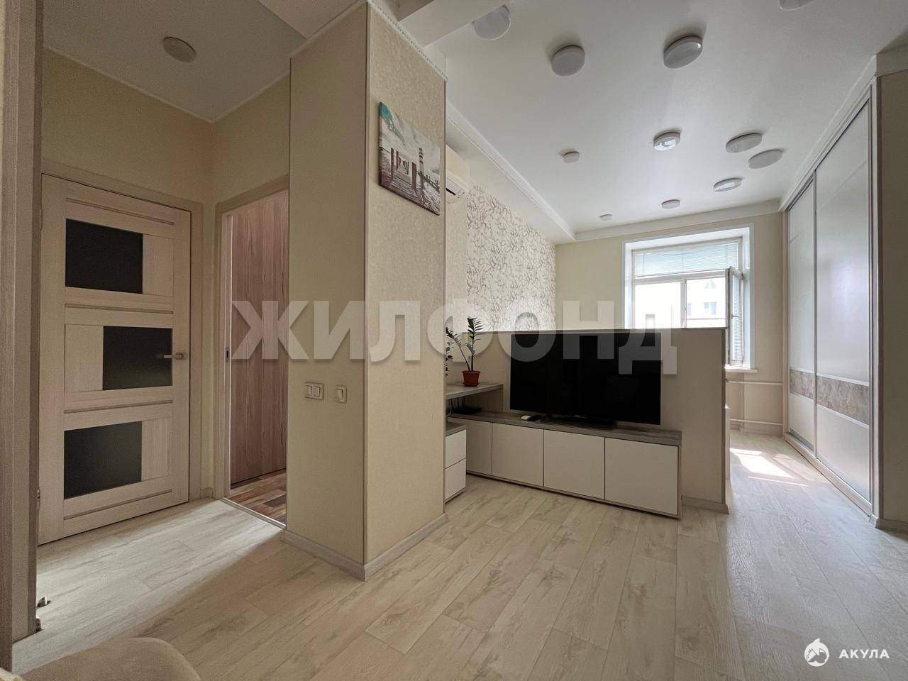 Зона спальни и гостиной разделены перегородкой. Перепланировка узаконена.