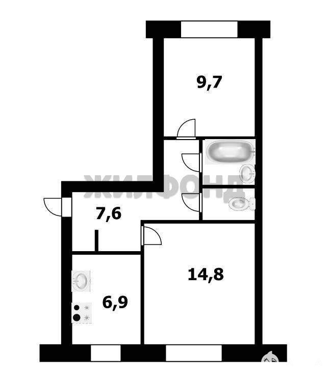 В продаже двухкомнатная квартира.