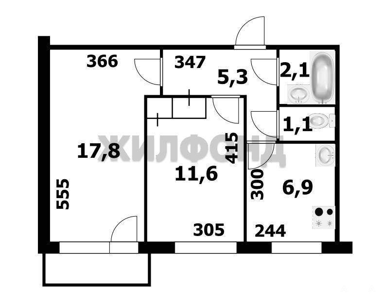 2 комн. квартира по ул. Красный проспект. Общей площадью: 42.70 кв.м.