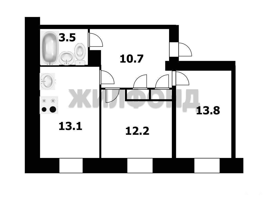 Функциональная планировка квартиры (большая квадратная прихожая 10 кв. м, две изолированных комнаты, кухня 13 кв м) .