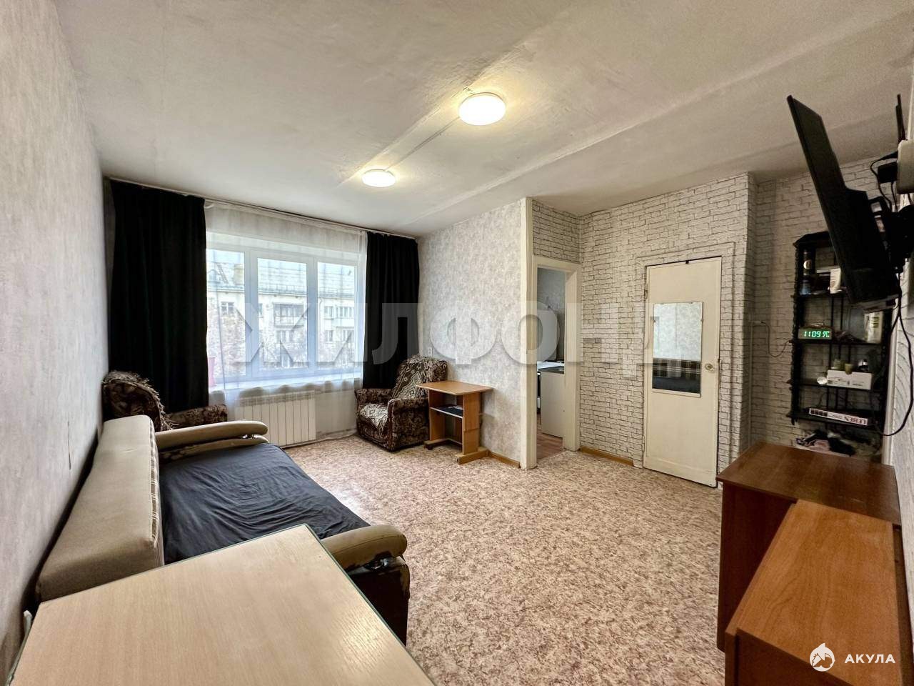 Светлая квартира на две стороны, есть возможность сделать две изолированные комнаты.