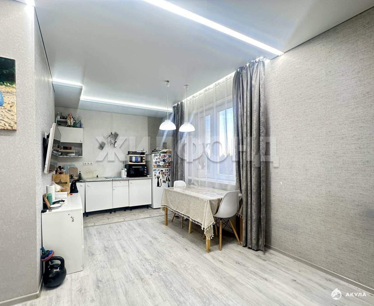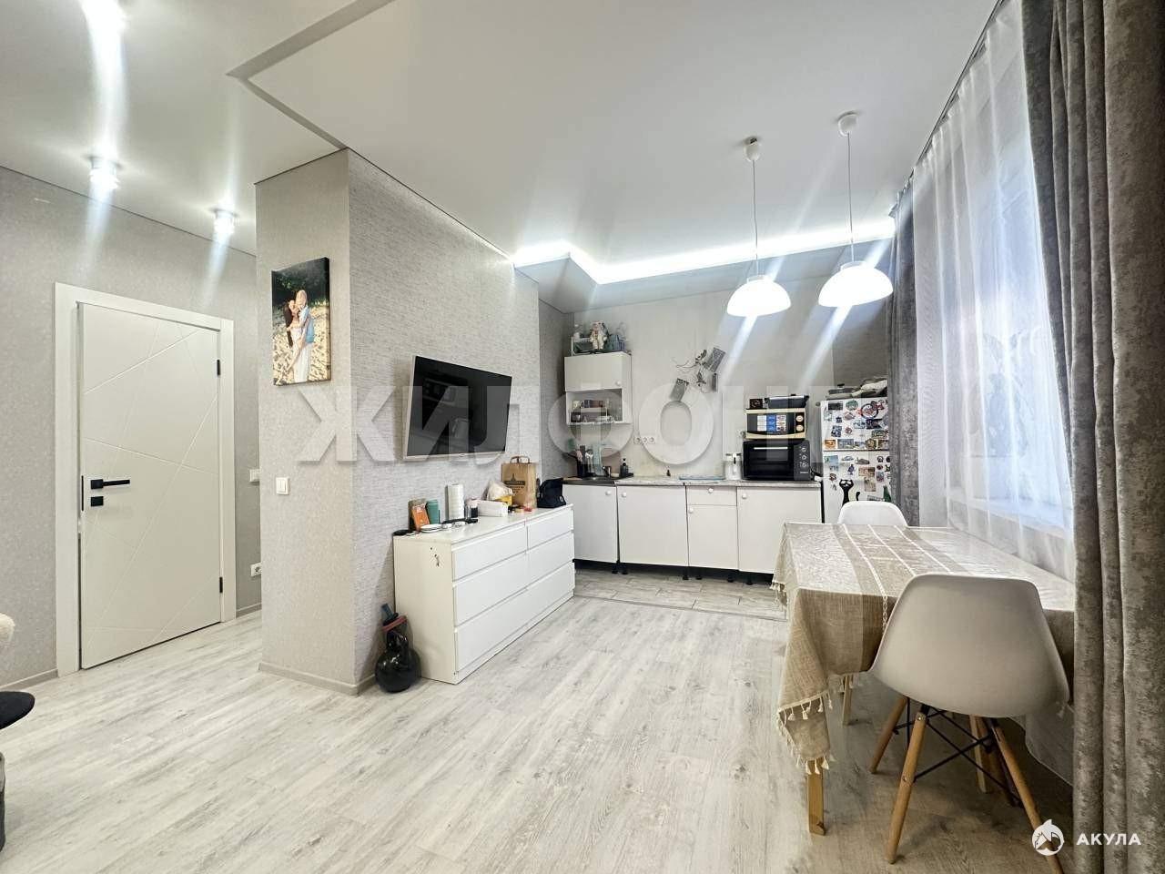 В квартире максимально комфортная планировка, просторная кухня-гостинная и 2 комнаты (детская и спальня) .
