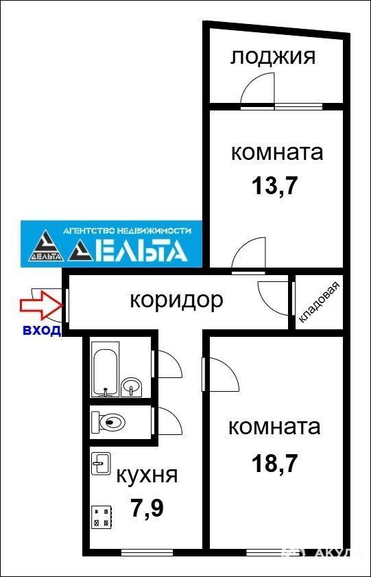 Площадь квартиры 57, 3 кв.м без учета лоджии.Большая прихожая, окна на две стороны дома, большая просторная лоджия.