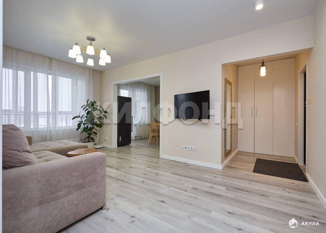 В жилых комнатах и коридоре на полу износостойкий кварцвинил. Ванная и санузел полностью выложены современным кафелем. В санузле установлен бойлер. Во всех комнатах - натяжные потолки с точечными светильниками.