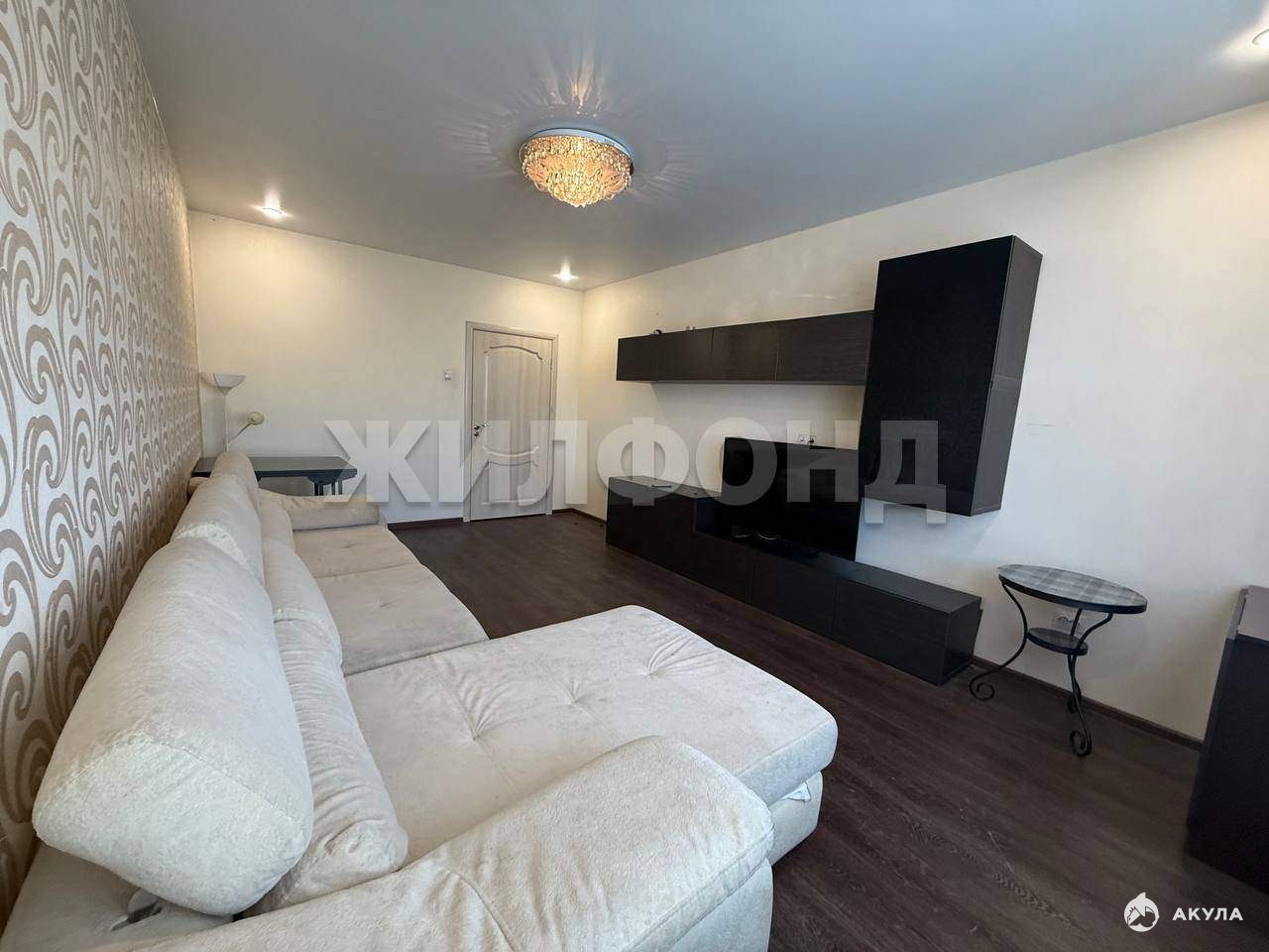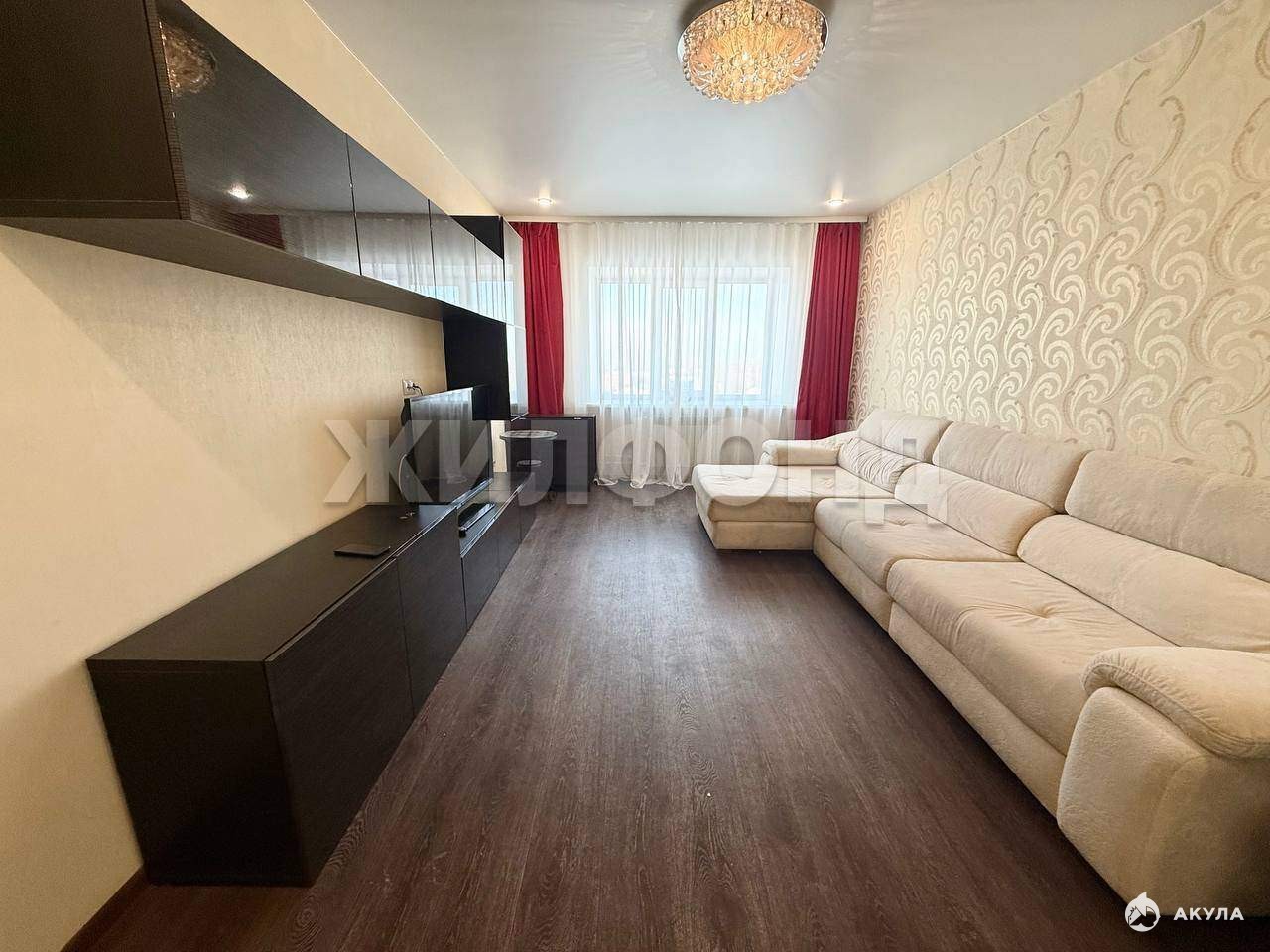 Просторная гостиная с выходом на застекленную лоджию, откуда открывается вид на спокойный двор.