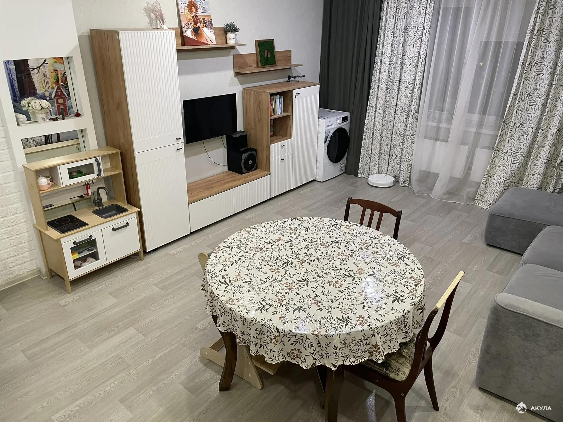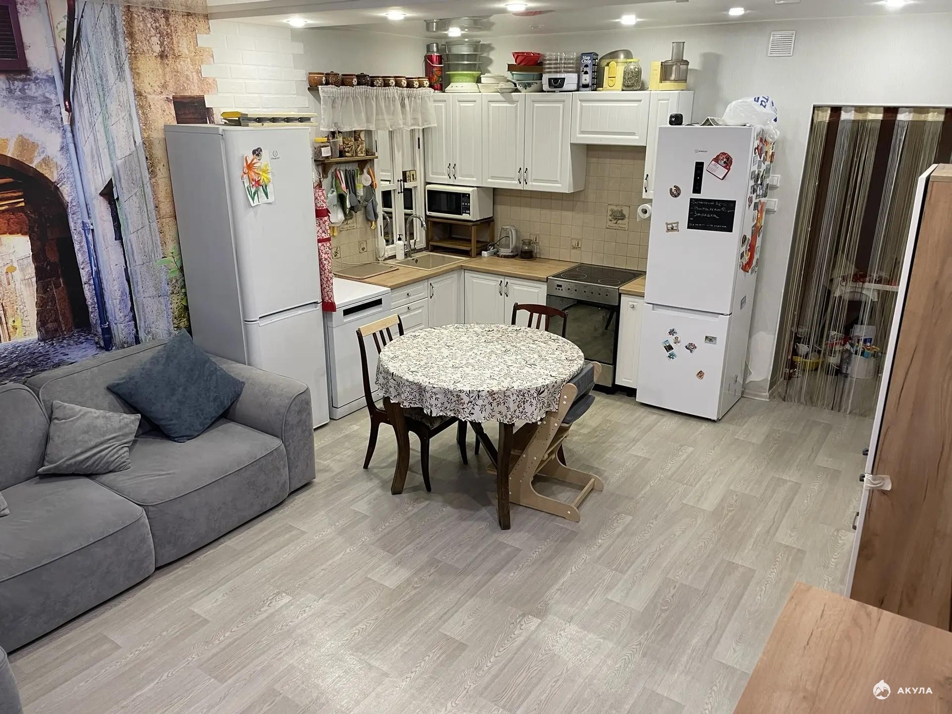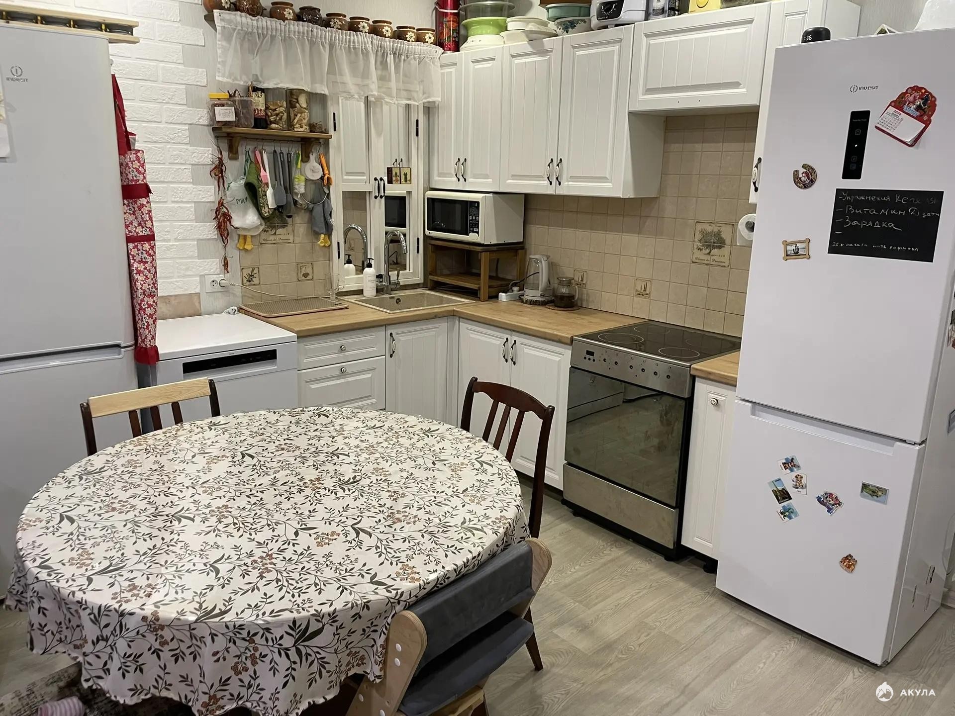 Бонусом новым владельцам останутся кухонный гарнитур, кровать и полки в детской комнате.