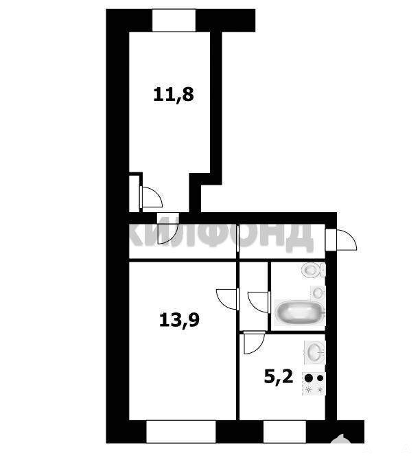 2 комн. квартира по ул. Забалуева. Общей площадью: 43.50 кв.м.