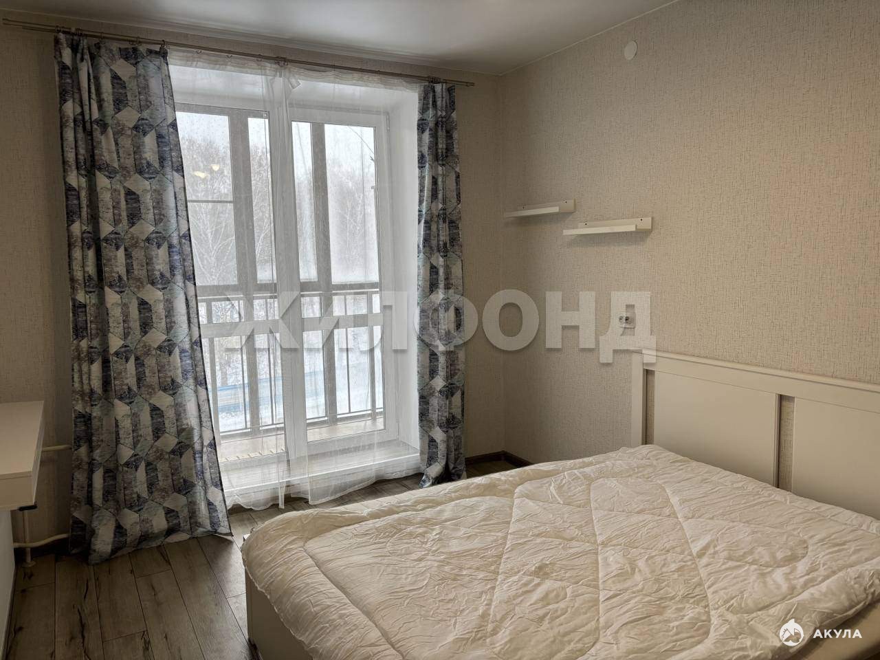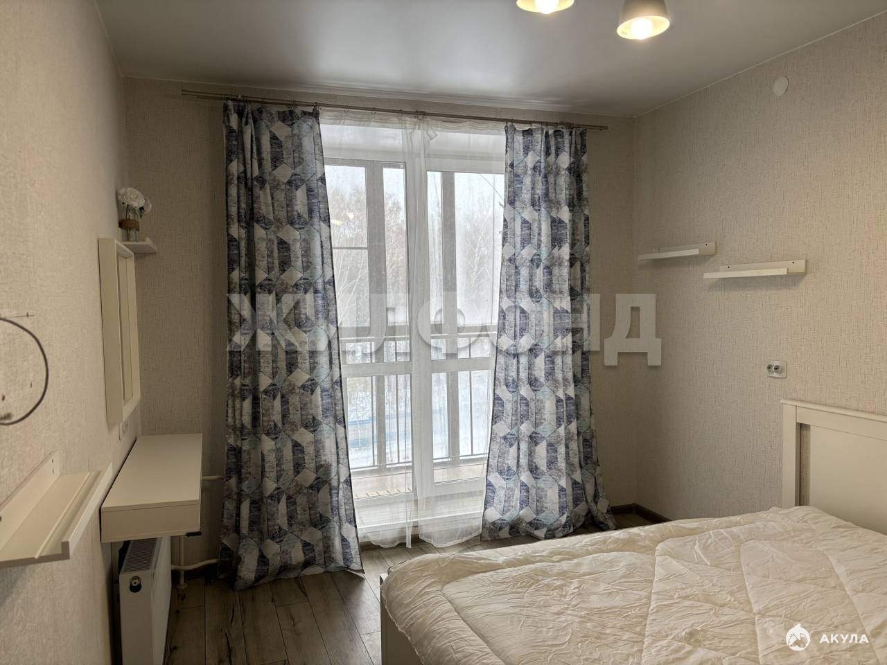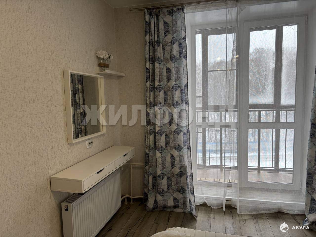 В спальне площадью 12, 8 кв.м. расположена лоджия.