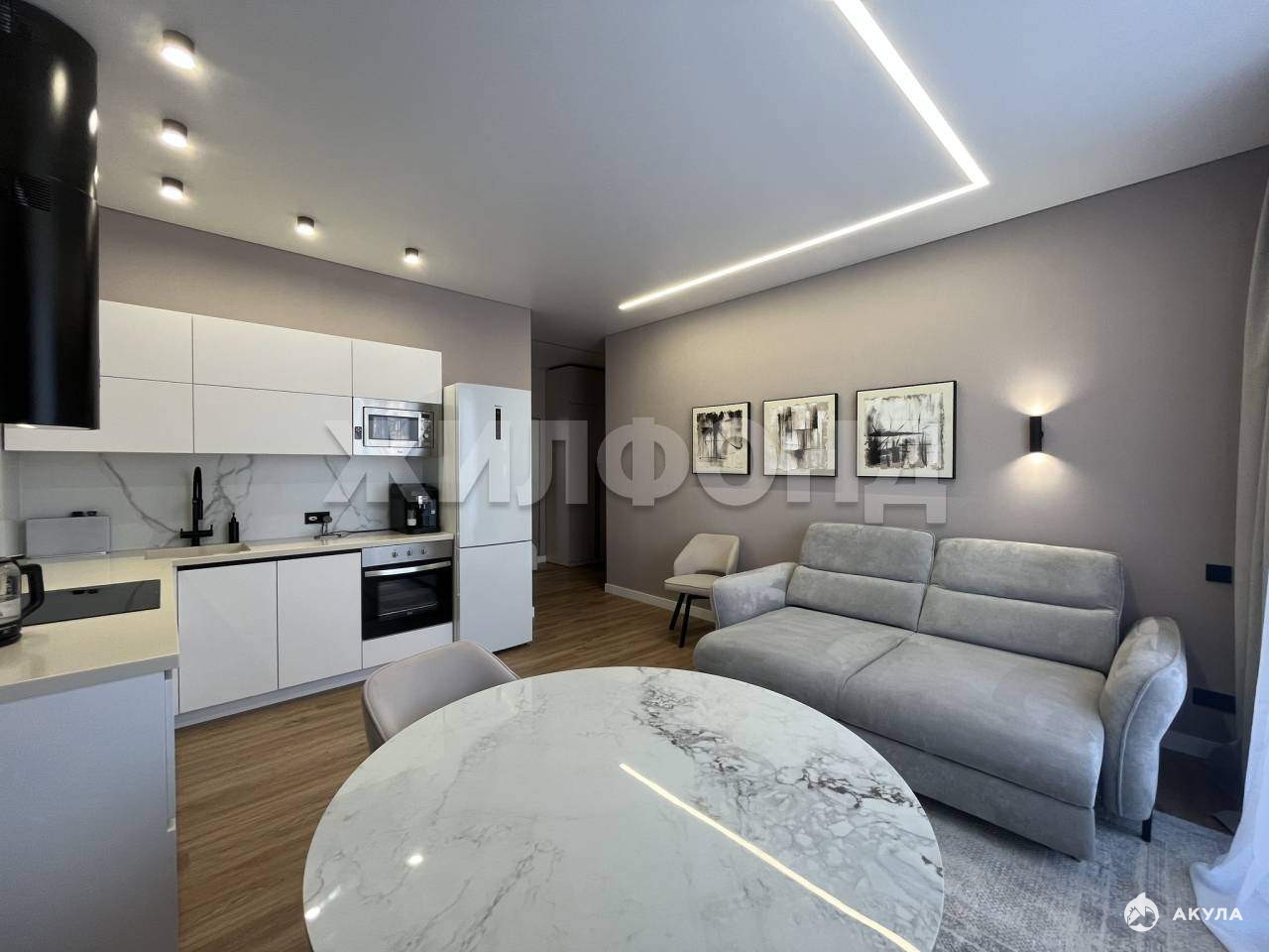 Здесь ваша дружная семья будет собираться за большим столом в уютной кухне-гостиной.