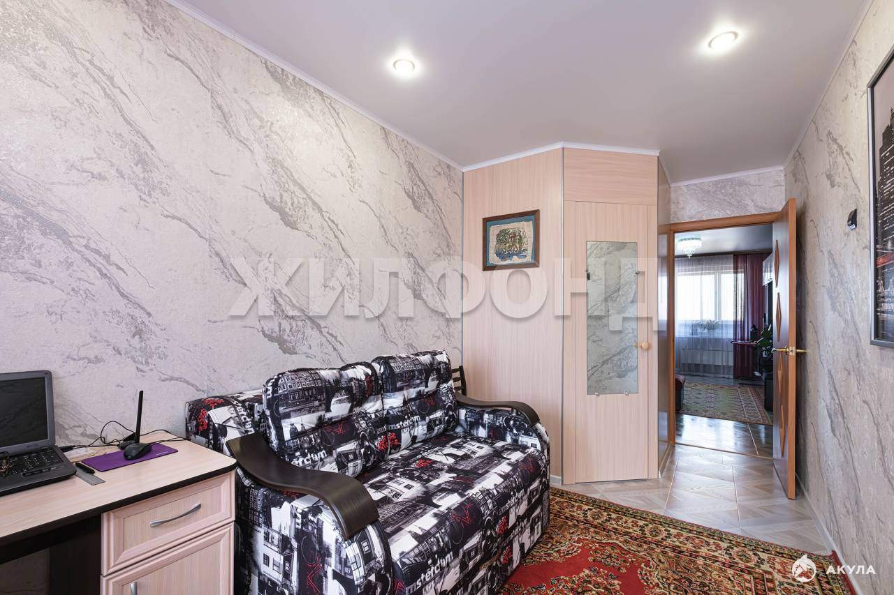 Чистая, ухоженная. Последний этаж, вас никто не побеспокоит. Лоджия и балкон остеклены.